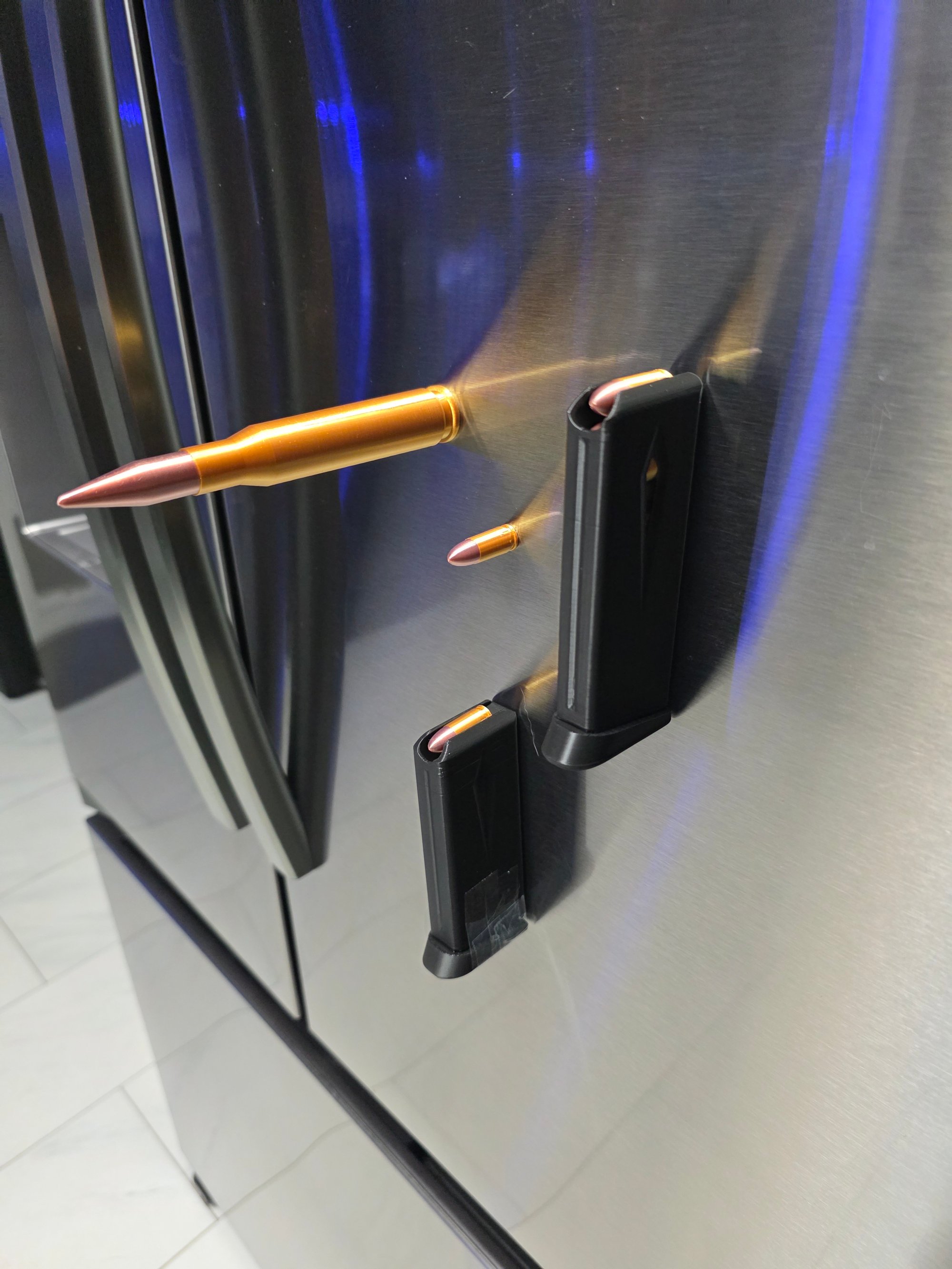 The magazine and rounds have magnets in them that will hold them up to your fridge, tool box, gun safe, or any other metal surface that is magnetic.